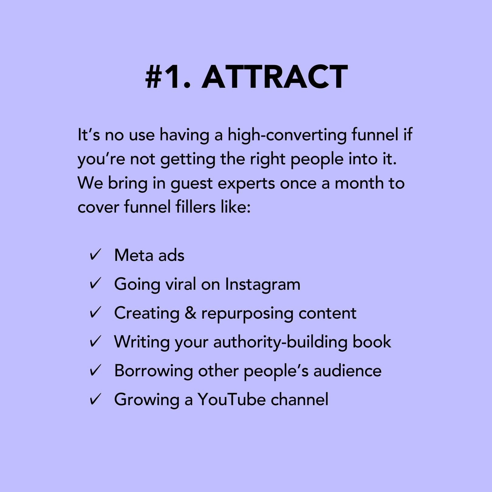 At the end of these first 90 days, you’ll have a live funnel. Not theoretical or half-built. LIVE. Converting. And recouping your investment.